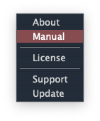 Clicking on the manual option will open a Finder or Explorer window at the location of the manual on your hard drive, in pdf format.